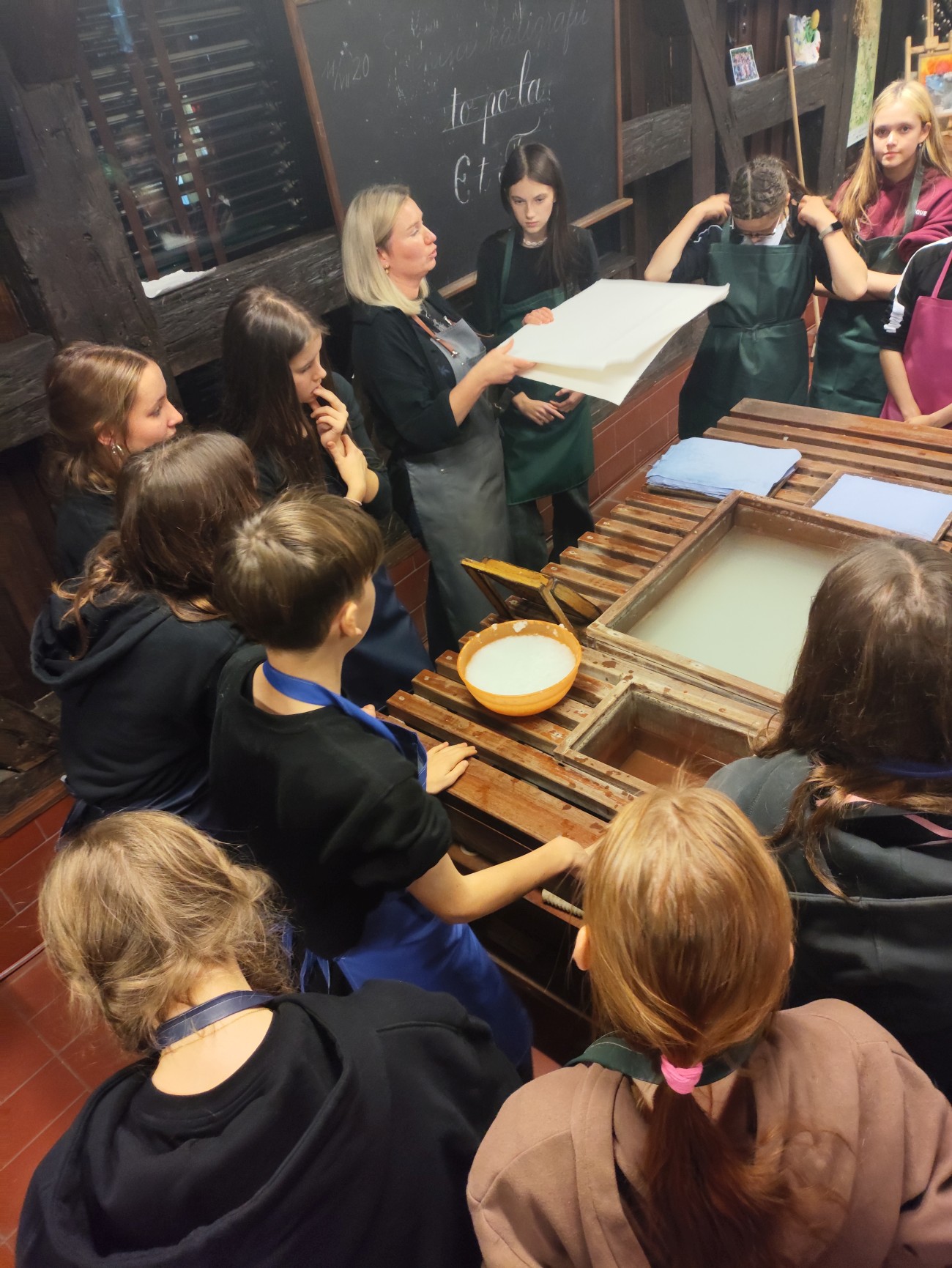 - Muzeum Papiernictwa, w którym zapoznali się z historią produkcji papieru, techniką rzemieślniczą oraz uczestniczyli w warsztatach „Czerpania papieru”.